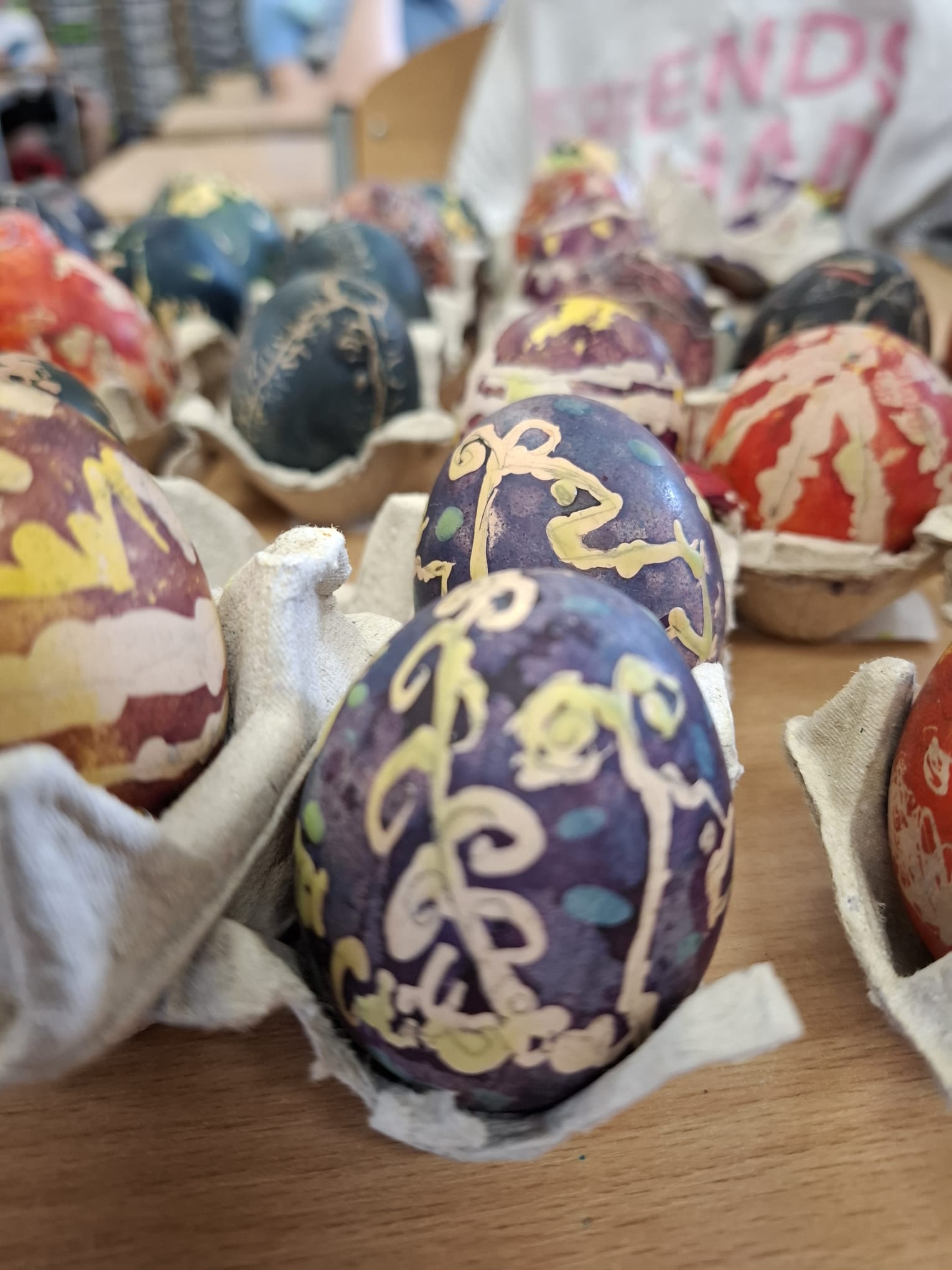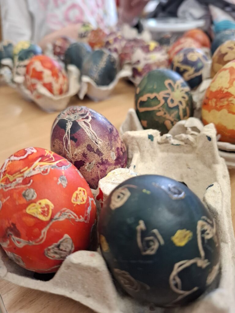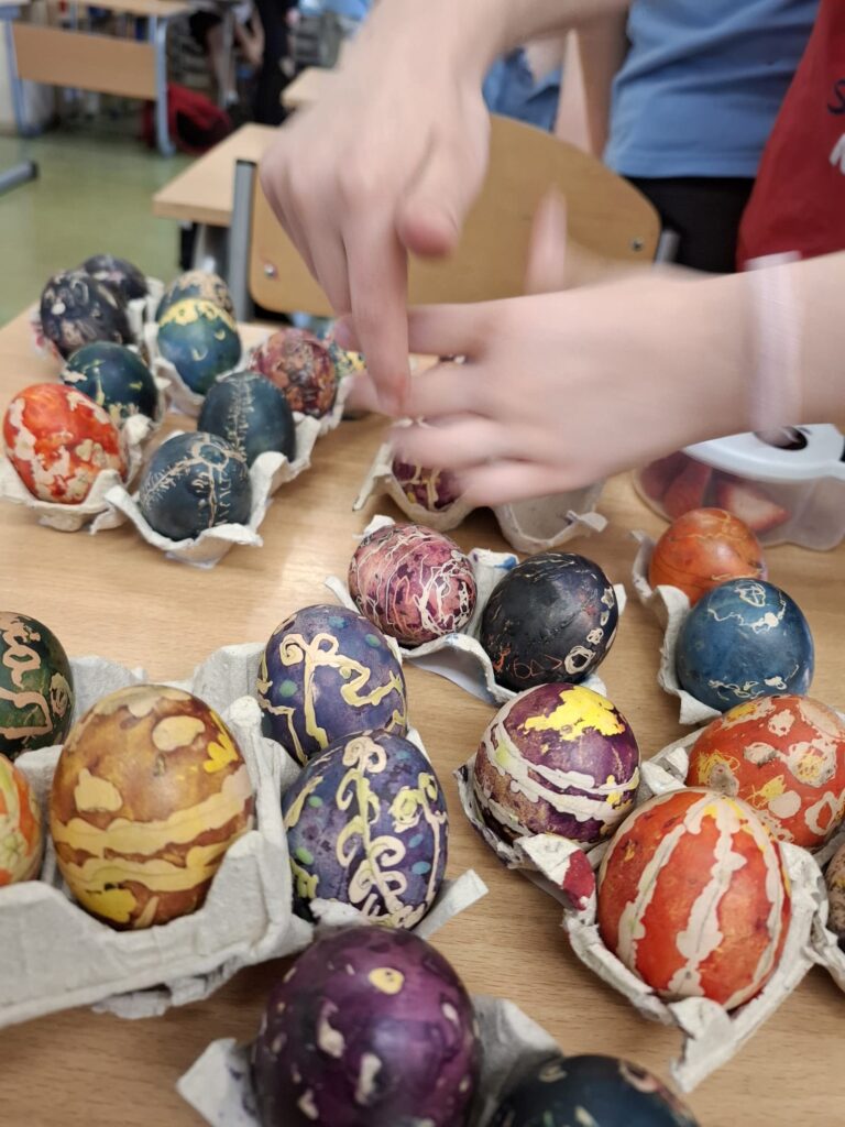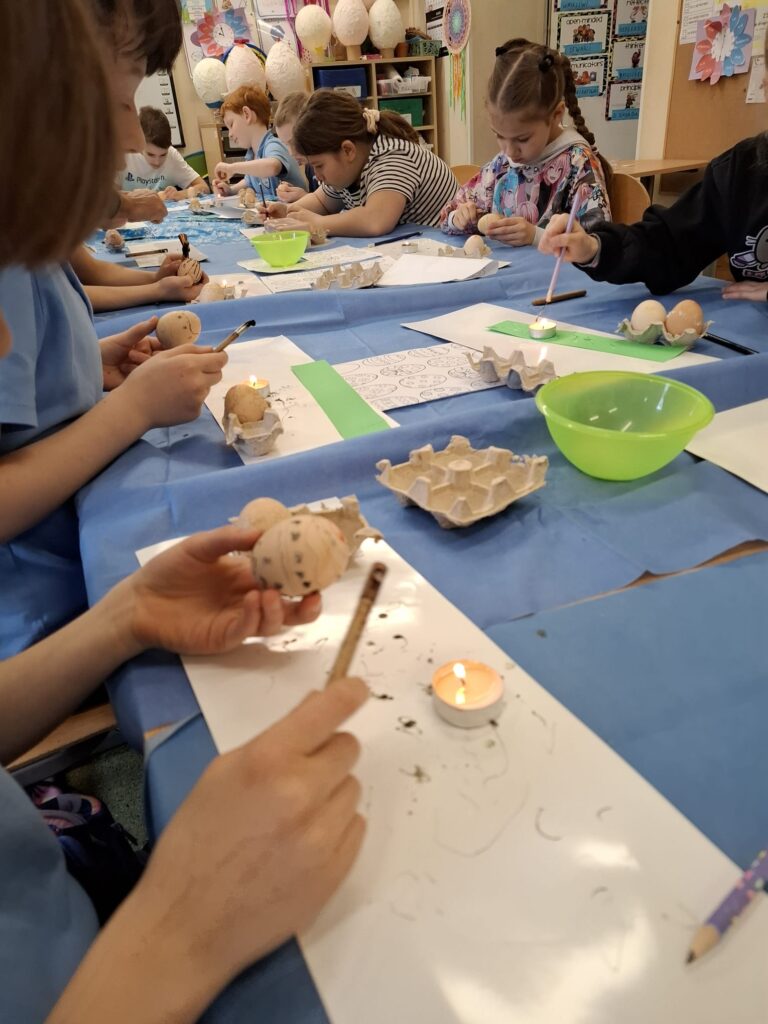 Budowanie poczucia tożsamości pozwala zrozumieć swoje korzenie. Dzięki tradycjom dzieci uczą się, jakie wartości są w życiu ważne i dlaczego warto się nimi kierować. Podtrzymywanie tradycji zdobienia jajek ma ważne znaczenie dla kultywowania i rozwijania tożsamości. Uczniowie wzięli udział w warsztatach malowania jaj gorącym woskiem oraz nakładania kolorów poprzez kąpiele barwiące. Każde dziecko mogło spróbować tej ciekawej techniki.
