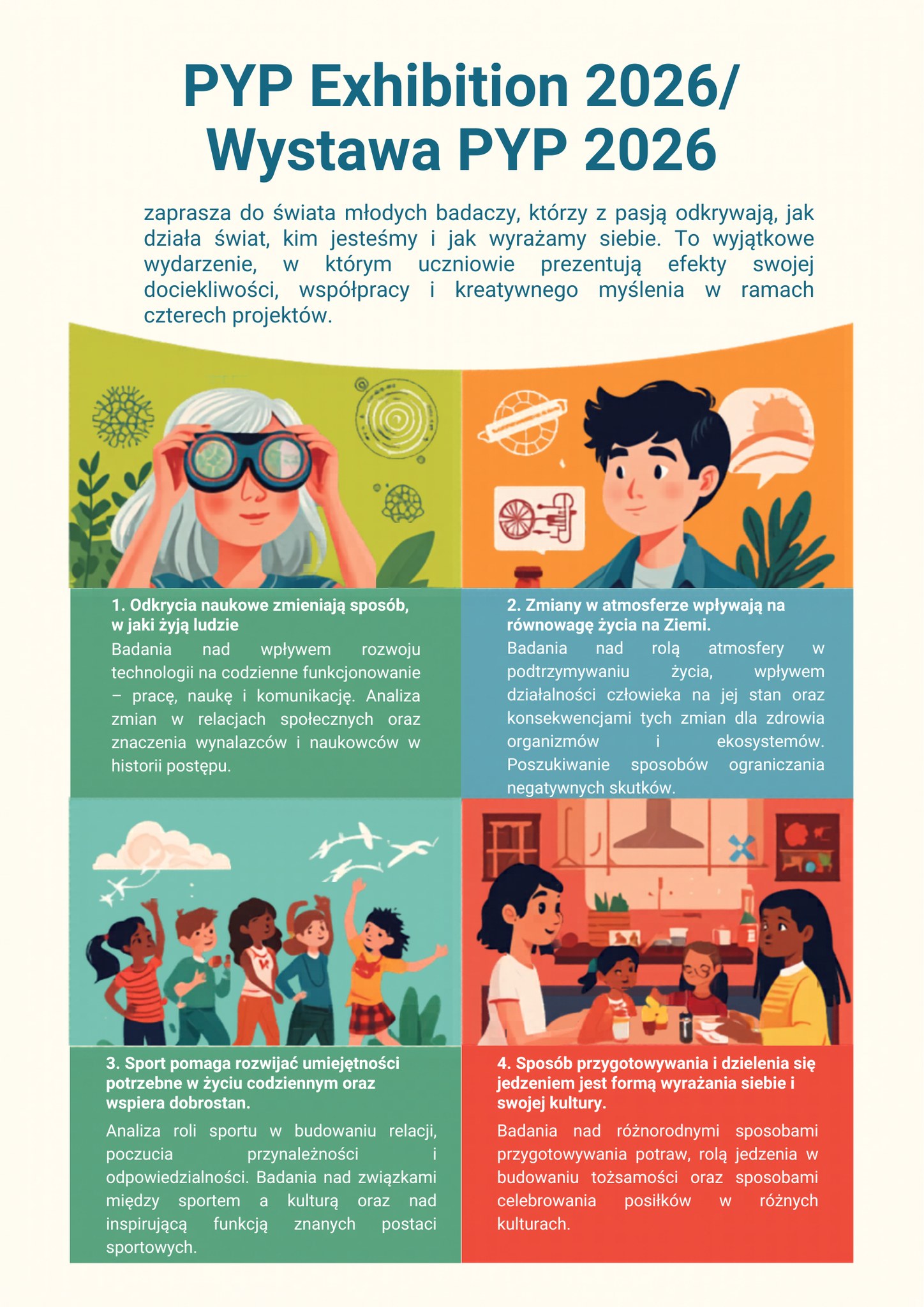 Wystawa PYP 2026 Wystawa PYP zaprasza do świata młodych badaczy, którzy z pasją odkrywają, jak działa świat, kim jesteśmy i jak wyrażamy siebie. Podziel się:Udostępnij na Twitterze(Otwiera się w nowym oknie)Kliknij, aby udostępnić na Facebooku(Otwiera się w nowym oknie)Kliknij, aby udostępnić na Google+(Otwiera się w nowym oknie)Dodaj do ulubionych:Lubię Wczytywanie... Podobne